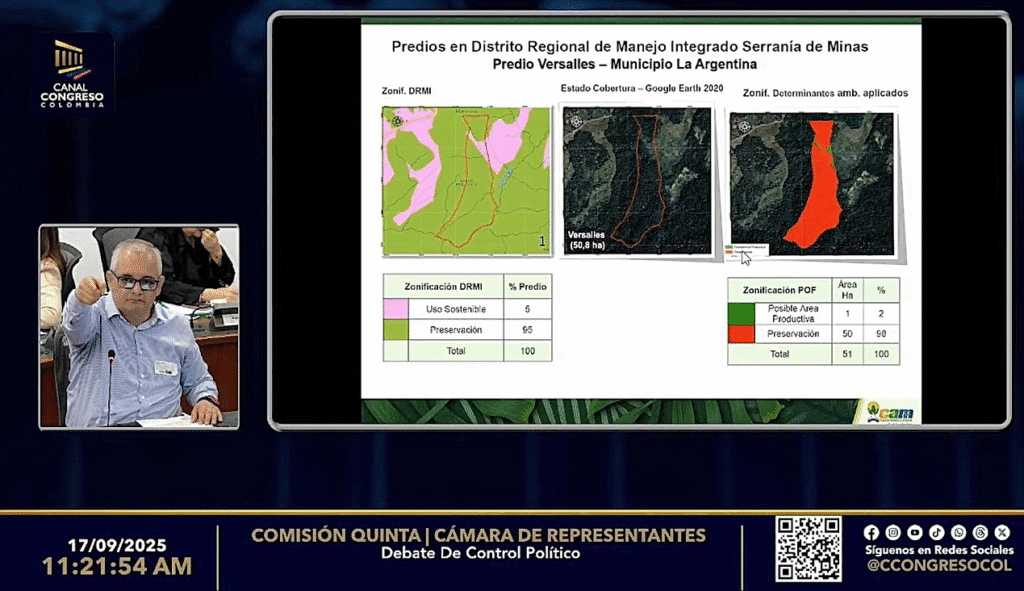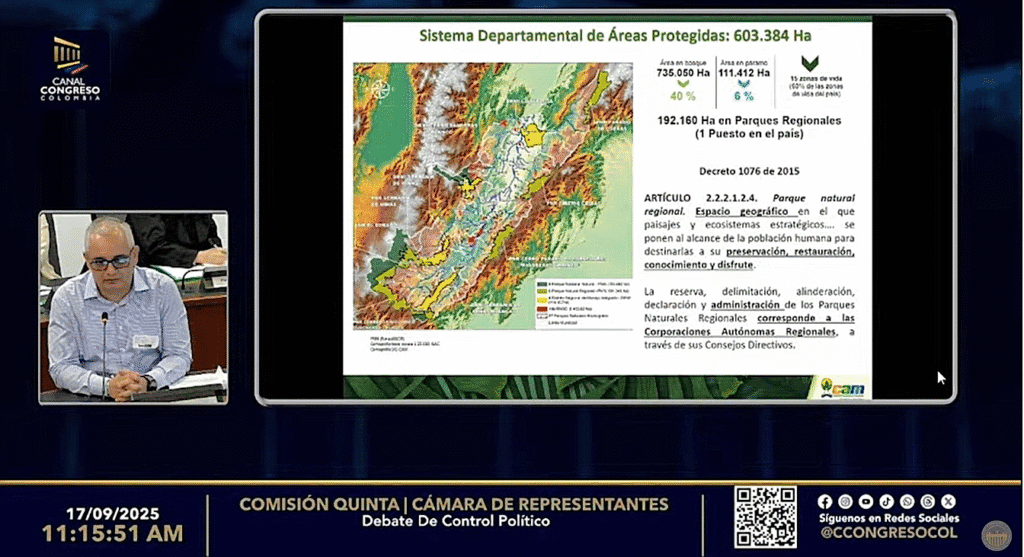 El director de la CAM, Camilo Augusto Agudelo Perdomo, aseguró durante un debate de control político en la Comisión Quinta de la Cámara que estas decisiones desconocen más de dos décadas de trabajo en conservación y afectan directamente el Parque Natural Regional Páramo de Miraflores.