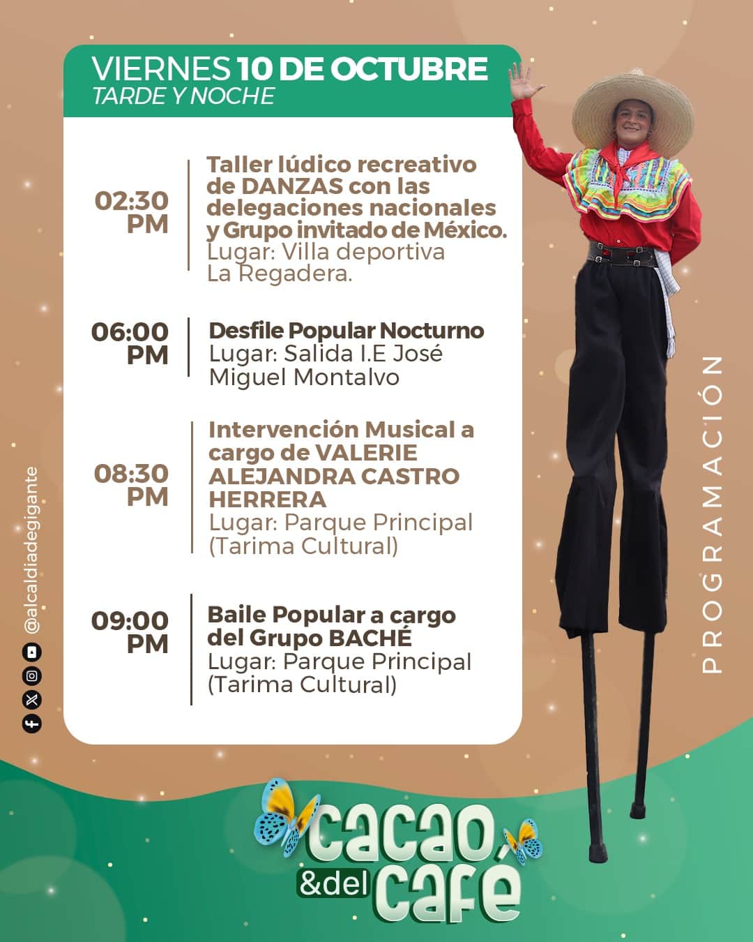 Programación 38° Festival folclórico reinado popular y departamental del Cacao y del Café