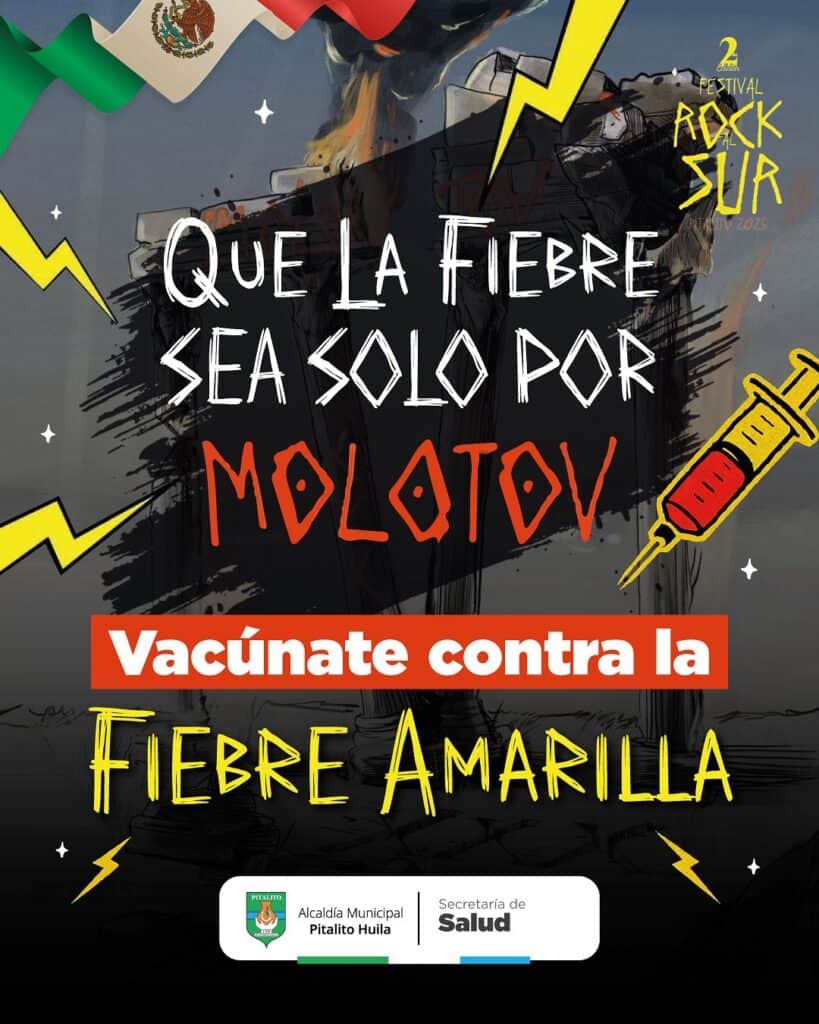 En vísperas del Segundo Festival Rock al Sur, la Secretaría de Salud Municipal de Pitalito lanzó un llamado a la comunidad para prevenir la fiebre amarilla, enfermedad transmitida por mosquitos y que puede evitarse con una sola dosis de vacuna.